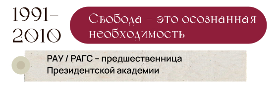 Через 2,5 года, указом Президента РФ от 6 июня 1994 года, на базе РАУ создана Российская академия государственной службы (РАГС) при Президенте РФ. На Академию были возложены функции учебно методического, научного, информационно-аналитического и методического центра по проблемам государственной службы в РФ. Среди конкретных задач
