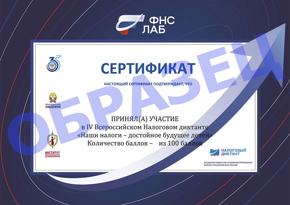 Все подробности – в письме с сертификатом о прохождении Налогового диктанта, которое придет на указанную вами электронную почту.