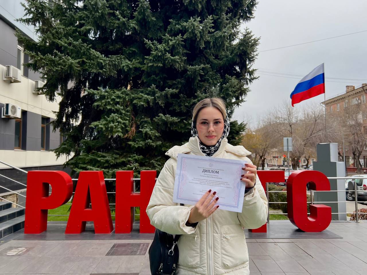 Студентка Президентской академии в Волгограде Дарья Слепуха стала победителем международного конкурса научно-исследовательских работ среди молодых ученых «Исследования нового поколения – 2024» в номинации «Лучшая курсовая работа». Участниками конкурса, прошедшего на базе Волгоградского филиала, стали 392 студента со всей России.
