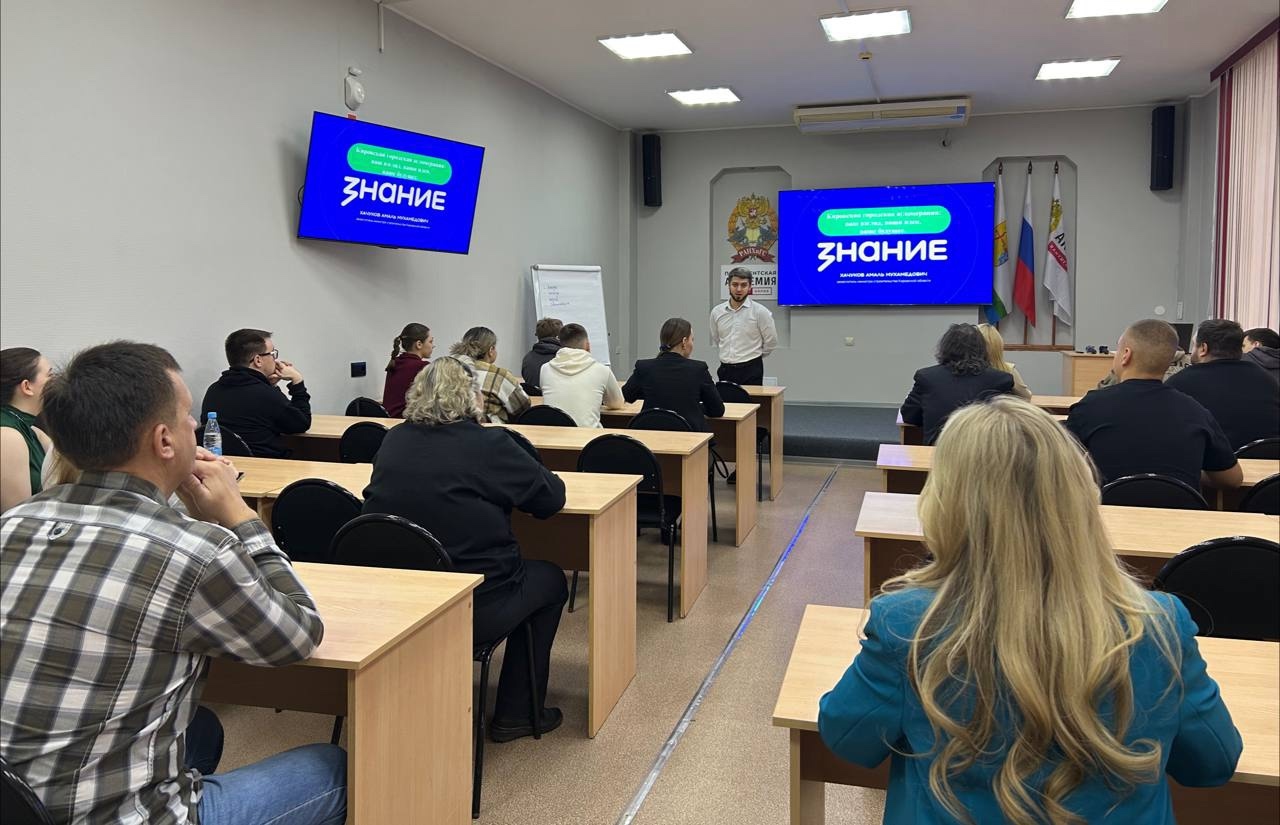 21 октября заместитель министра строительства Кировской области Амаль Мухамедович Хачуков выступил с лекцией от Российского общества "Знание" в Кировском филиале Президентской академии РАНХиГС.