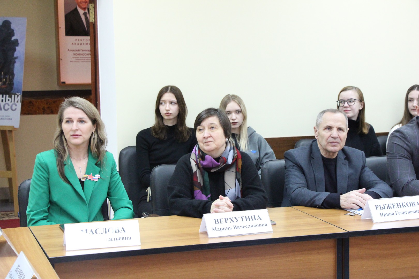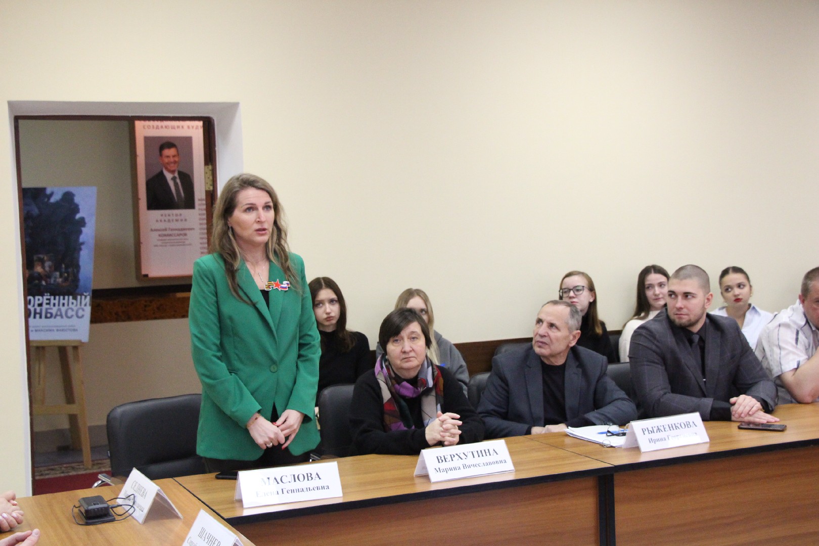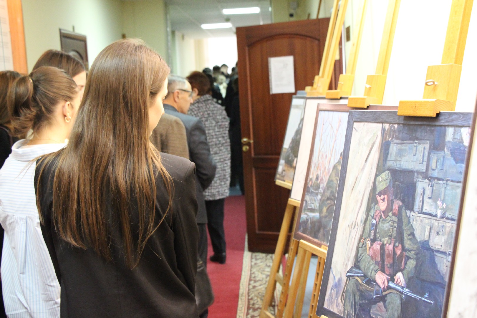 Церемонию открытия выставки провела доцент филиала Ирина Рыженкова, которая рассказала об истории Дня Героев Отечества, который праздновался несколько дней назад и с которым открытие экспозиции также связано.