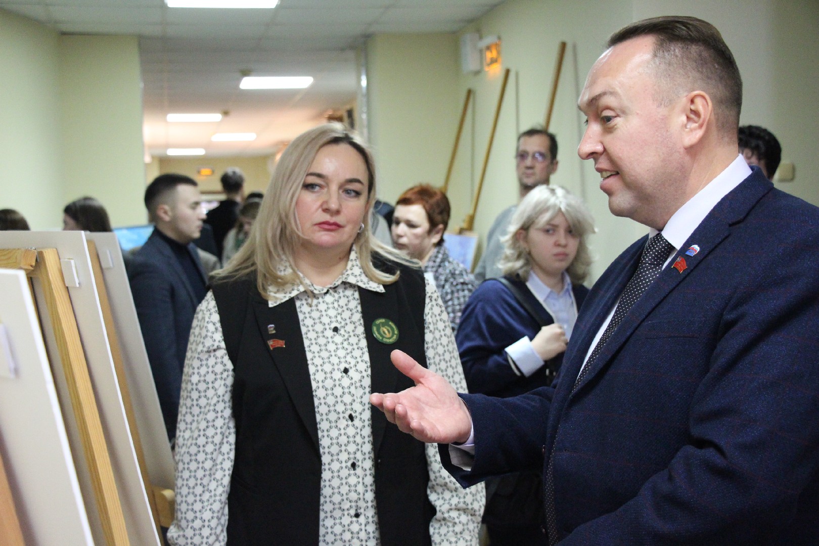 Об истории создания картин, о выставке и ее концепции проинформировал Вячеслав Губанов - заместитель председателя комитета по молодежной политике, физической культуре и спорту Брянской областной Думы.