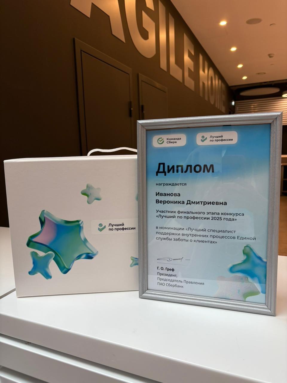 Иванова Вероника Дмитриевна - выпускница 2024 года по специальности 38.02.07 Банковское дело вошла в ТОП-15 сотрудников внутренней поддержки со всего Сбербанка и получила грамоту от Германа Грефа -Председателя правления публичного акционерного общества «Сбербанк России» в главном офисе Сбербанка.